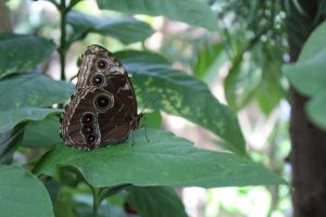 Some butterflies use their wings for camouflage, while others, often those with brighter colors, use them as a warning to predators that they are poisonous or unpleasant to taste. Others, like the Magnificent Owl Butterfly, have wing patterns that mimic large eye spots, scaring predators by making them appear bigger or more dangerous. Some butterflies even have specific colors or patterns to help attract mates. The next time you see a butterfly in the wild or at Butterfly Pavilion, ask yourself why it carries the pattern on its wings. There’s likely an important reason behind it.