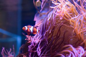 One thing that our guests often get confused about is mistaking our corals for colorful underwater plants or even rocks. However, they’re actually invertebrates, playing one of the most important roles in our oceans! There are different kinds of corals, hard or stony corals, and soft corals. Each coral is called a colony, and each coral colony is made up of hundreds of tiny polyps. Hard corals are made of tiny polyps that build hard skeletons of calcium carbonate to form corals such as staghorn and brain corals. Whereas soft corals lack these rigid skeletons and are more flexible with variants being known as sea fans, sea whips and leather corals. Combined, these hard and soft coral colonies form the reefs we know and love, which support nearly 25% of all marine life on Earth. Corals also have an incredible partnership with microscopic algae called zooxanthellae (zoh-uh-zan-thel-ee). These algae live inside coral tissue and provide food through photosynthesis, while the coral offers protection and nutrients in return resulting in a mutualistic relationship. This relationship not only fuels coral growth but also gives reefs their brilliant colors.